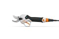 დანის გახსნის მოქნილი რეგულირება სქელ და წვრილ ტოტებზე. ტოტების სისქის შესაბამისი დანის გასახსნელად, რომლებთანაც მუშაობთ, შეგიძლიათ აირჩიოთ გახსნის 2 სიგანეს შორის. თავდაპირველად ჩართვის შემდეგ, დანის გახსნა ყოველთვის უფრო დიდ სიგანეზეა დაყენებული. უფრო მცირე გახსნის სიგანე შეიძლება შეირჩეს თხელი ტოტების გასხვლისას. სარგებელი: დანა არ საჭიროებს ბოლომდე გახსნას. ეს ზრდის ჭრის სიჩქარეს და მუშაობის პროგრესს. დანის გახსნის დაყენებული სიგანე ნაჩვენებია ეკრანზე. - OLED ეკრანი - მნიშვნელოვანი ინსტრუმენტის მონაცემები ერთი შეხედვით. სასარგებლო ინფორმაცია ნათლად არის ნაჩვენები ადვილად წასაკითხ OLED ეკრანზე. ეს მოიცავს დამონტაჟებული ბატარეის დატენვის დონეს, არჩეულ დანის გახსნის სიგანეს და ჭრების საერთო რაოდენობას.