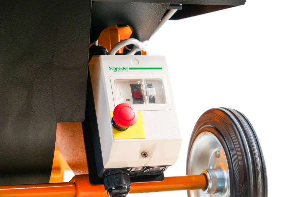 - ძრავი - სამფაზიანი ელექტროძრავი. მოყვება ელექტრო სტარტერი და გადამრთველი. აღჭურვილობა კონფიგურირებულია უწყვეტი მუშაობისთვის და დაცულია მოკლე ჩართვისა და დენის ფაზის გათიშვისგან. მაქსიმალური სამუშაო ტემპერატურა: 40°C. მაქსიმალური სამუშაო ფარდობითი ტენიანობა: 95%. ის დაცულია მტვრისგან, ხენჯისგან, გაზებისგან, ტენიანობისა და ნორმალური მუშაობის შედეგად წარმოქმნილი ვიბრაციისგან. მართვის პანელი: ჩართვა/გამორთვის გადამრთველი, თერმული გადატვირთვის გადამრთველი და საგანგებო გამორთვა. აღჭურვილობას აქვს დისტანციური მართვის პედალი მუშაობისთვის.